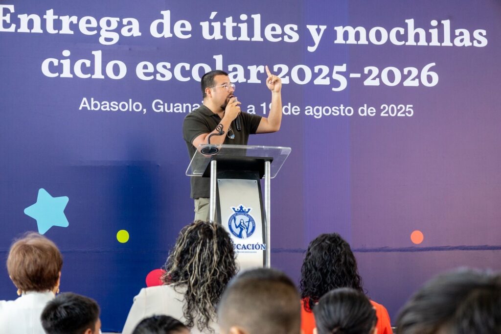 Abasolo, Gto., 19 de agosto de 2025. – Con el objetivo de apoyar a la niñez y a las familias del municipio, este martes arrancó en la Escuela Primaria “Vicente Guerrero” el programa estatal de entrega de útiles escolares, encabezado por el presidente municipal Job Gallardo y el Secretario de Educación, Luis Ignacio Sánchez Gómez, en coordinación con el Gobierno de la Gente.