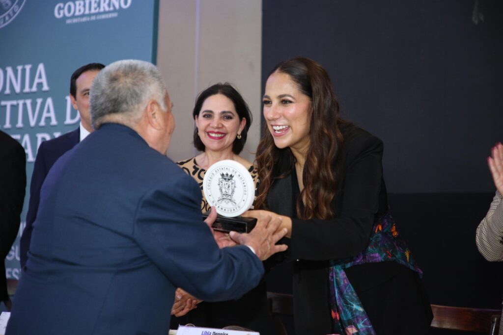 En el marco de la misma jornada, la gobernadora Libia Dennise García Muñoz Ledo encabezó la ceremonia conmemorativa por el Día del Notario, donde reconoció la labor de las y los profesionales del derecho que, dijo, “son guardianes de historias, de derechos y de sueños que se materializan en escrituras, testamentos, actas y certificaciones”.