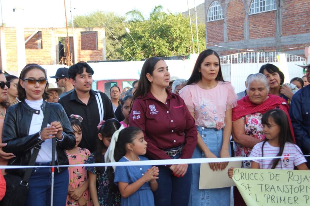 Durante su gira de trabajo por la zona rural, acompañada de las regidoras Jennifer Alatorre Berumen y Leticia Arroyo Rodríguez, la alcaldesa inauguró la pavimentación con concreto hidráulico de las calles Circuito Benito Juárez, Villa y Mariano Jiménez, en la comunidad Cruces de Rojas.