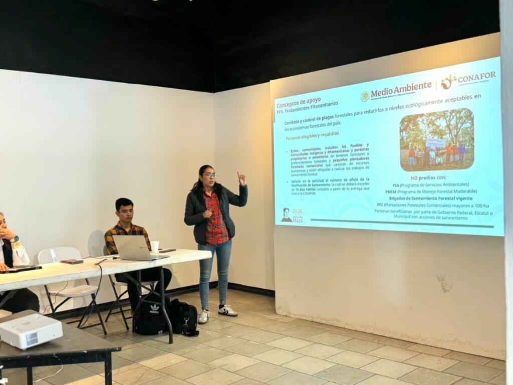 La reunión fue encabezada por la titular de Medio Ambiente, María Guadalupe Chico Razo, quien explicó que este acercamiento tiene como finalidad facilitar el acceso a programas federales dirigidos a ejidatarios y propietarios de terrenos forestales dentro del ANP. Durante el encuentro se presentaron las Reglas de Operación 2026 del programa “Apoyos para el Desarrollo Forestal Sustentable”, particularmente en el componente de Tratamientos Fitosanitarios.