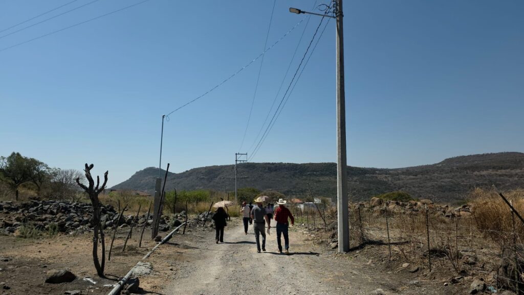 La gira también pasó por La Madeja, donde se revisó la obra en la calle principal, fundamental porque conecta directamente con la primaria y el templo. Pero no todo fue electricidad: en La Sarna y El Guayabito de Pedrosa se supervisó el avance del proyecto integral de agua potable, que contempla la ampliación de la red y el equipamiento del pozo para beneficiar aproximadamente a 400 tomas domiciliarias.