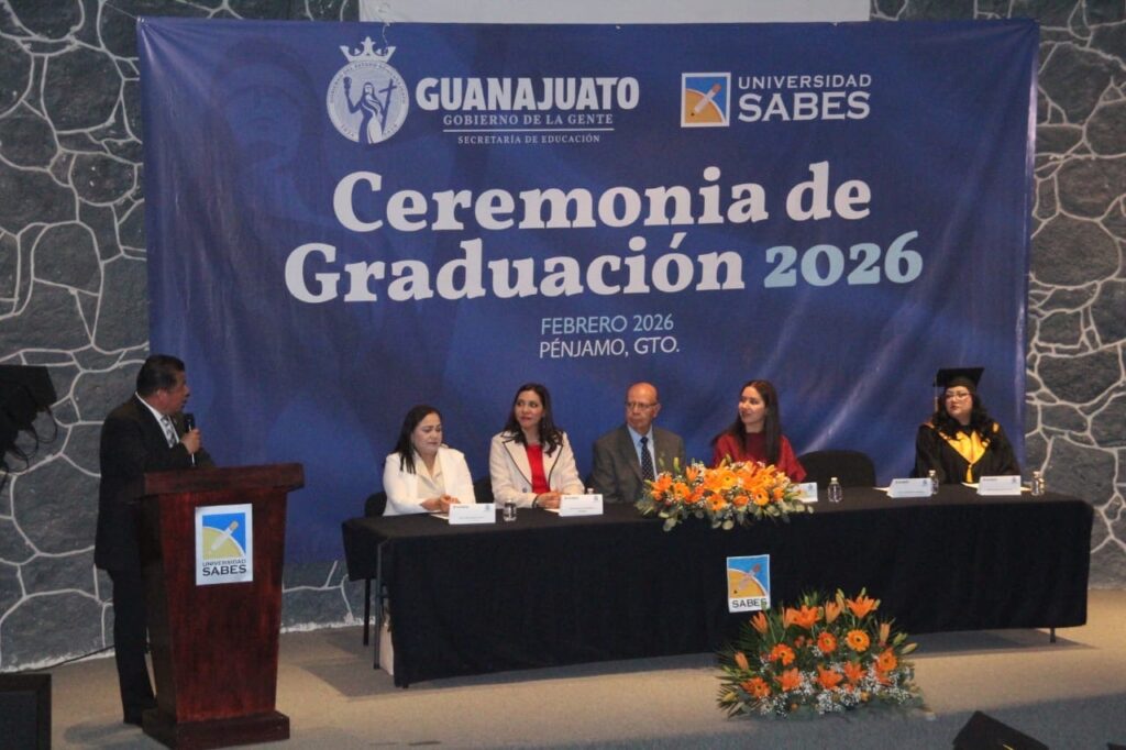Pénjamo, Guanajuato. La mañana de este sábado se llevó a cabo la ceremonia de graduación de la generación 2022–2025 de la Universidad SABES, campus Pénjamo, evento que fue encabezado por la presidenta municipal, Yozajamby Molina, y el director general del SABES, Alberto Diosdado.