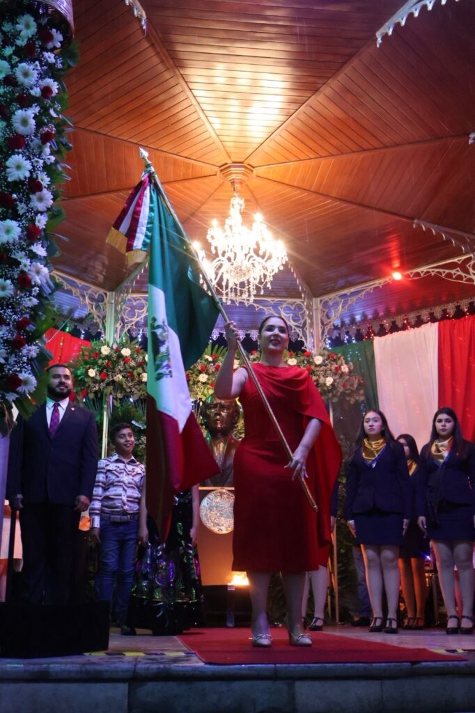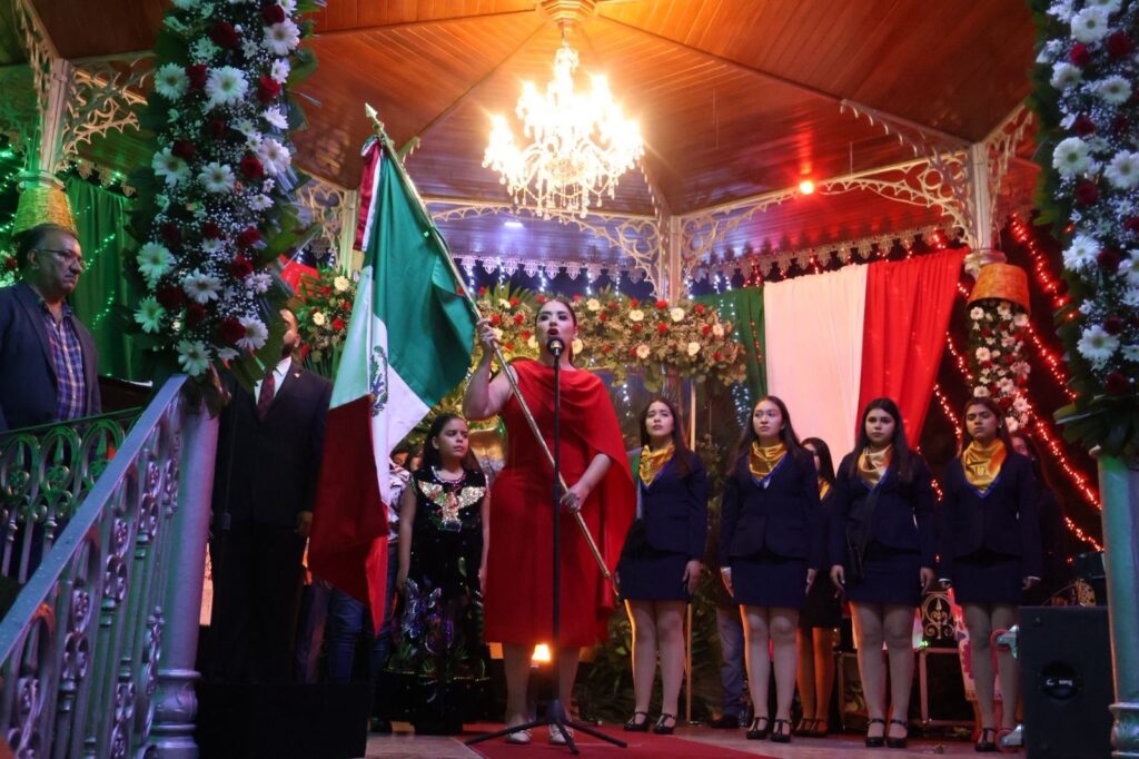 La ceremonia solemne fue encabezada por la presidenta municipal junto a los regidores Shahairy Cerda Lemus, Rolando Flores Ayala, Katia Susana Alvarado Hernández, Jennifer Alatorre Berumen, Leticia Arroyo Rodríguez, Luis Alberto Reyes Valle, Daisy Lizbeth Villalobos Magaña, Francisco Javier Pérez Cervantes y José Eduardo Martín Rojo. Desde el kiosco del jardín principal, la alcaldesa pronunció las tradicionales arengas como un homenaje a los héroes que forjaron la libertad y un llamado a la unidad, al amor por la patria y al orgullo de ser mexicanos.
