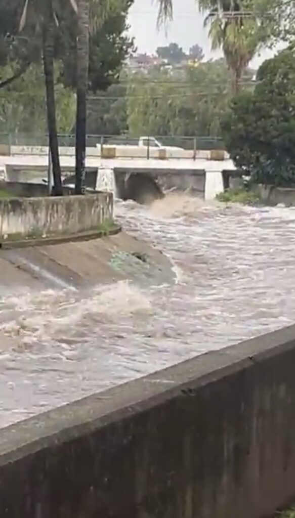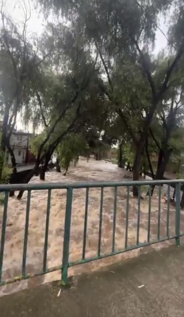 Durante las primeras horas de la mañana, personal de Protección Civil, Bomberos y Policía Municipal intensificó el monitoreo en distintos puntos del cauce. Entre las zonas más afectadas se registró el puente de la calle Independencia, donde la acumulación de maleza obstruyó el paso del agua y provocó desbordamientos que dañaron varios vehículos.