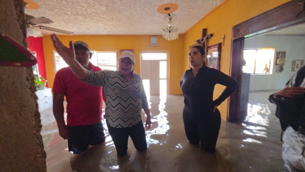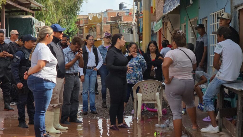 El recorrido incluyó además las comunidades de Mitad de Noria, donde dialogó con madres de familia del jardín de niños impactado por el agua; La Maraña, donde visitó puntos de riesgo; y Las Ánimas, donde verificó el daño en el camino principal y el derribo de un muro perimetral de una vivienda. En La Granjena, supervisó la extracción de agua de hogares y los trabajos de saneamiento para prevenir riesgos a la salud.