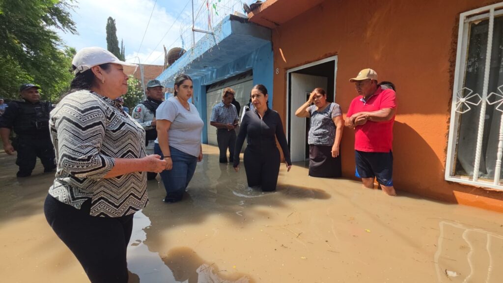 Acompañada por personal del DIF Municipal, Obras Públicas, Secretaría del Ayuntamiento, Servicios Básicos, Comité del Agua Potable de Santa Ana, Protección Civil, Oficialía Mayor, Desarrollo Económico, Seguridad Pública, Fuerzas de Seguridad Pública del Estado y Guardia Nacional, la alcaldesa visitó a familias afectadas para entregarles apoyo alimenticio y ayudarles en la reubicación de sus pertenencias.
