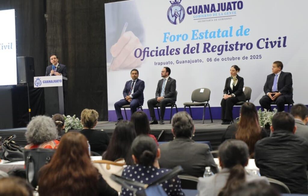 Irapuato, Gto., a 6 de octubre de 2025. – Con el propósito de fortalecer las capacidades, talentos y vocación de servicio de quienes laboran en las 170 Oficialías del Registro Civil del estado, el Gobierno de la Gente llevó a cabo el Foro Estatal de Oficiales de Registro Civil, en el que participaron más de 250 funcionarios de toda la entidad.